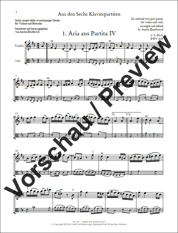 Aus den Sechs Klavierpartiten, für Violine und Bratsche